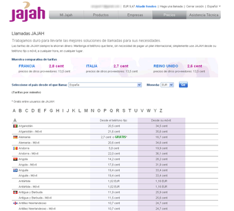Jajah está enfocado principalmente a las llamadas internacionales. Al igual que Skype, da la opción de usar el PC para hacer las llamadas. Sin embargo, Jajah destaca al permitir hacer llamadas desde el móvil o el fijo sin instalar ningún programa.
